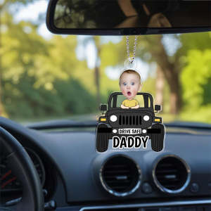 Drive Safe Daddy Personalised Car Photo Ornament Gifts for Dad Car Rearview Mirror Hanging Accessories