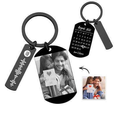 Personalised Spotify Calendar Keychain Custom Picture & Music Song Code Couples Photo Keyring Gifts