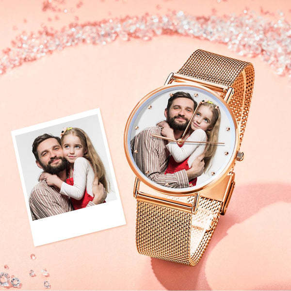 Anniversary Gifts Unisex Engraved Rose Gold Photo Watch