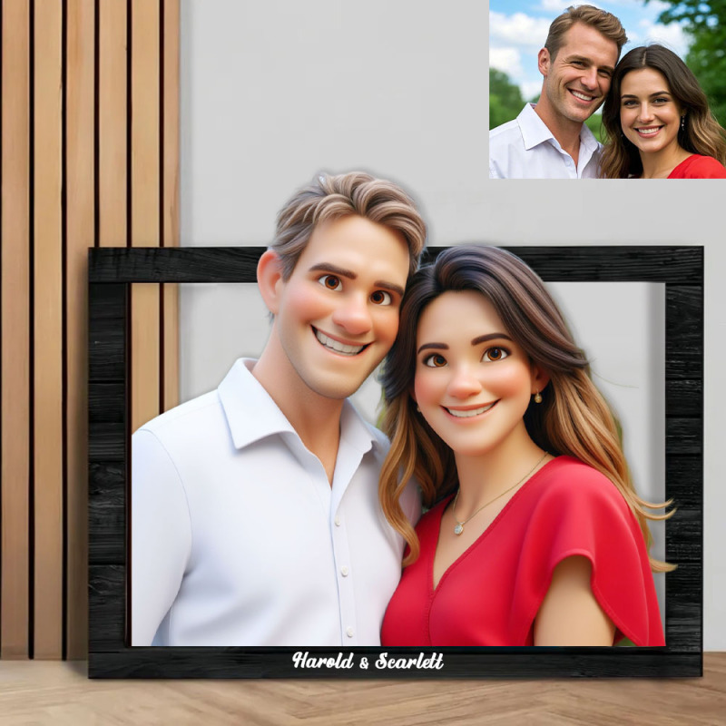 Couple Gifts Custom Couple Photo 3D Cartoon Portrait Gift Photo Frame, Cartoon Style 3D Photo Wooden Frame Sign, Wedding Anniversary Christmas Couple Gift