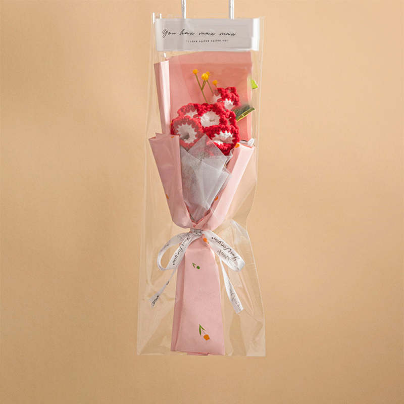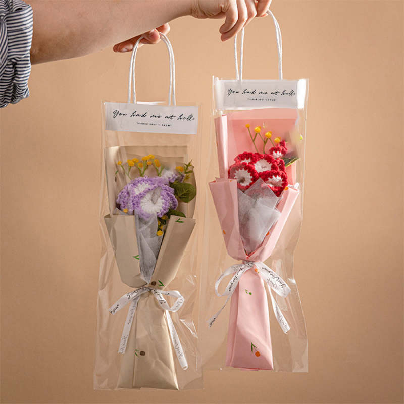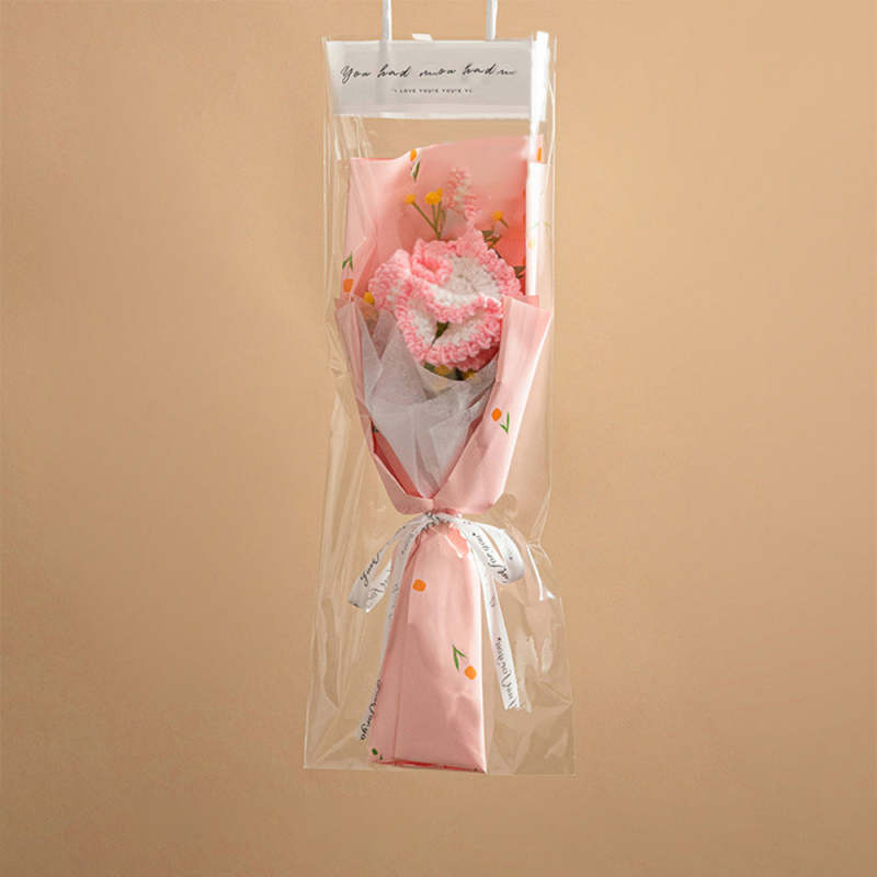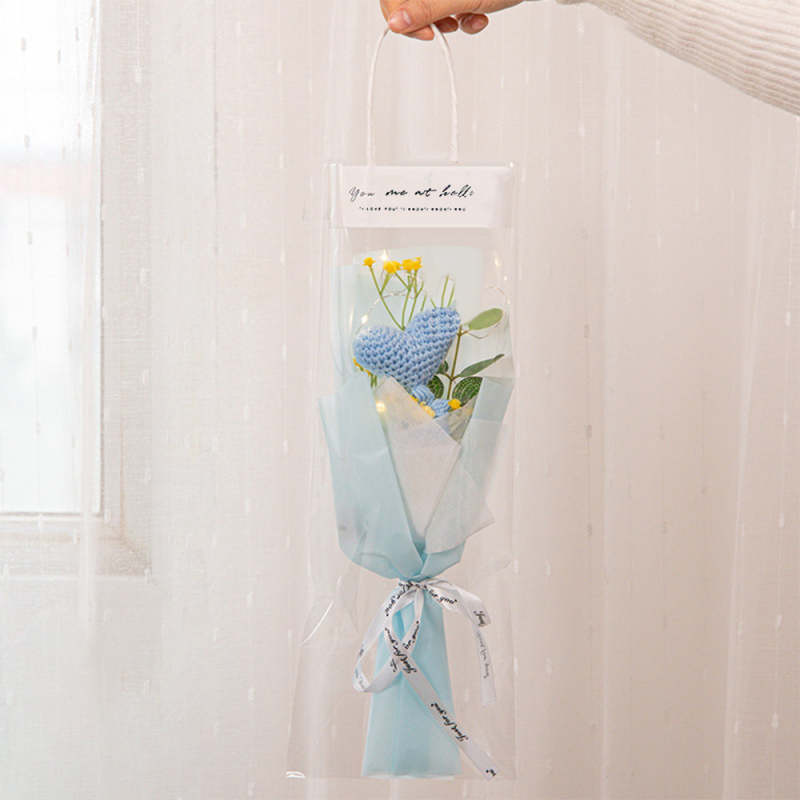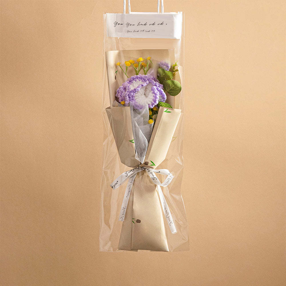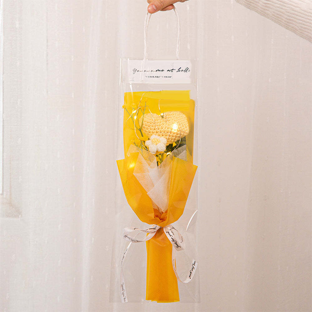Crochet Flowers Bouquet Handmade Knitted Tulip Carnation Bouquet with Light Strip Gift for Her