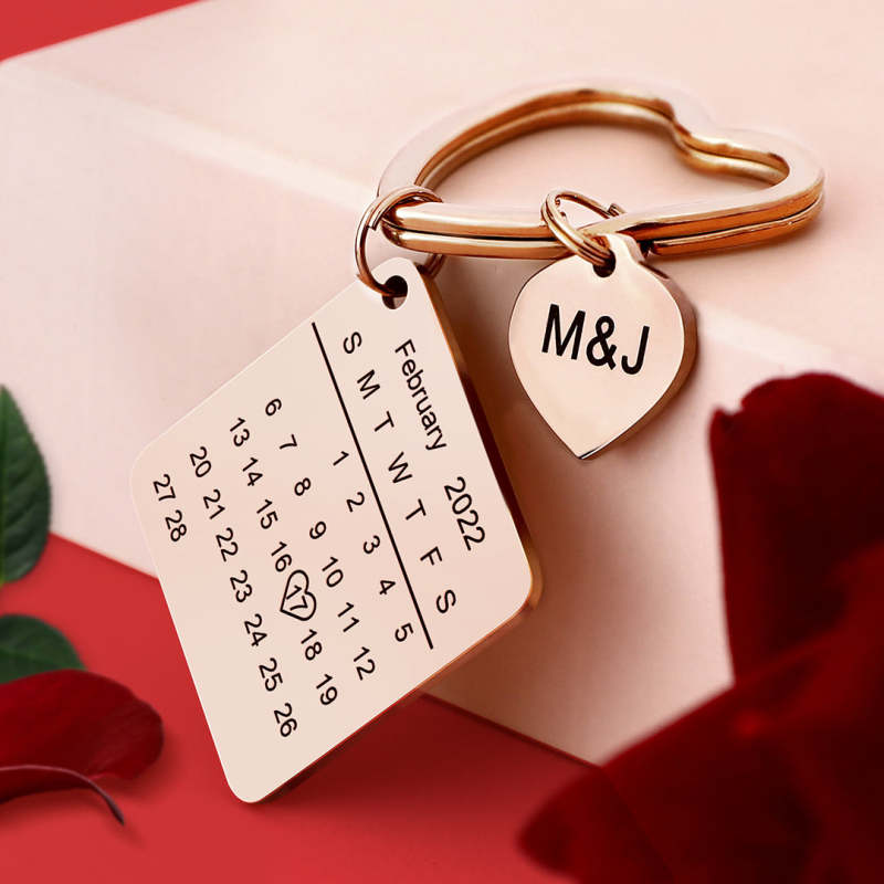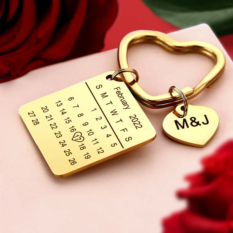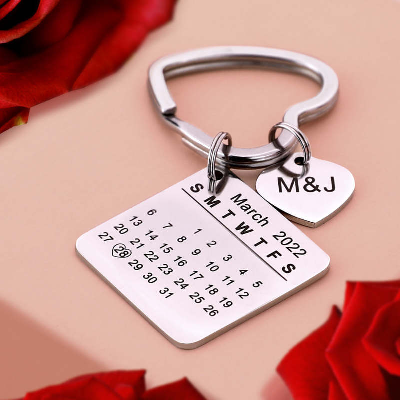 Custom Calendar Keychain Heart Shape Keychain Gift For Anniversary