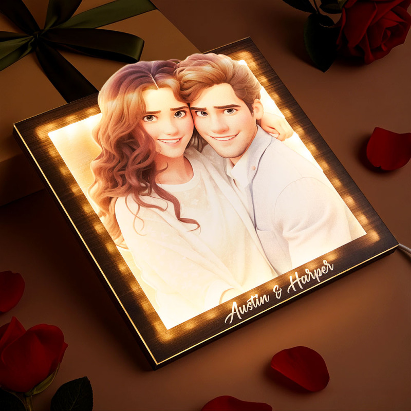 Custom cartoon couple photo square warm light photo frame lamp Valentine's Day gift for couples