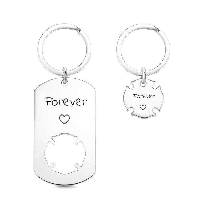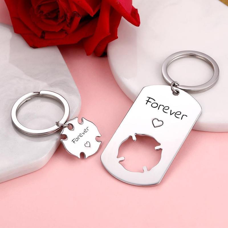 Custom Engraved Couple Keychain Set - Clover Dog Tag