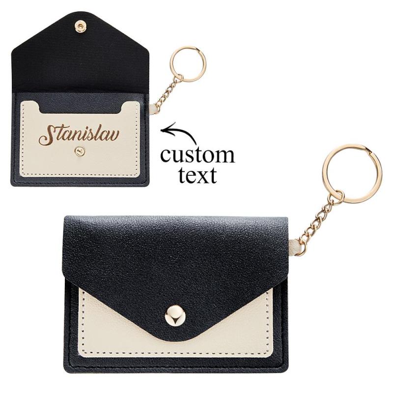 Custom Engraved Keychain Wallet Leather Card Holder Creative Gifts