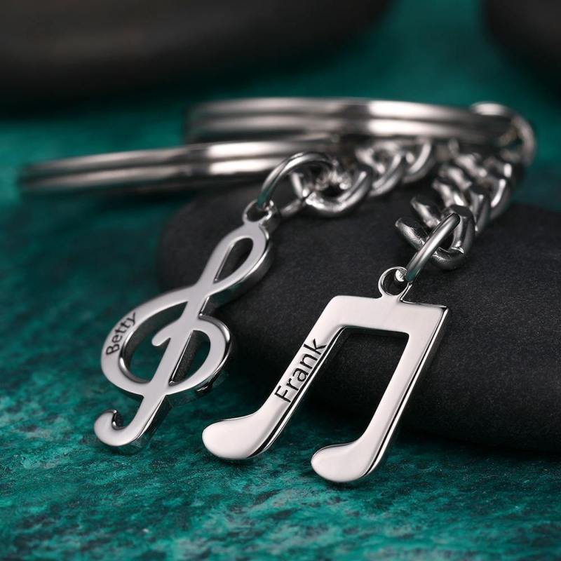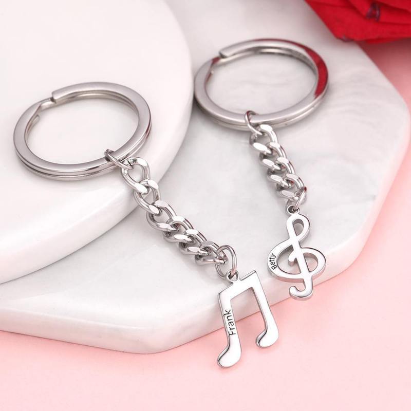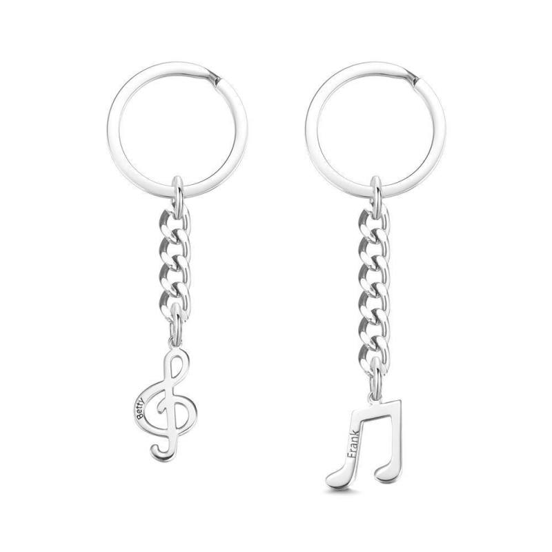 Custom Engraved Name Musical Note Puzzle Couple Keychain Set