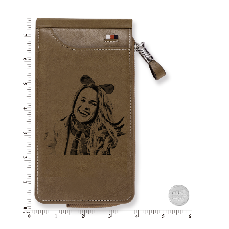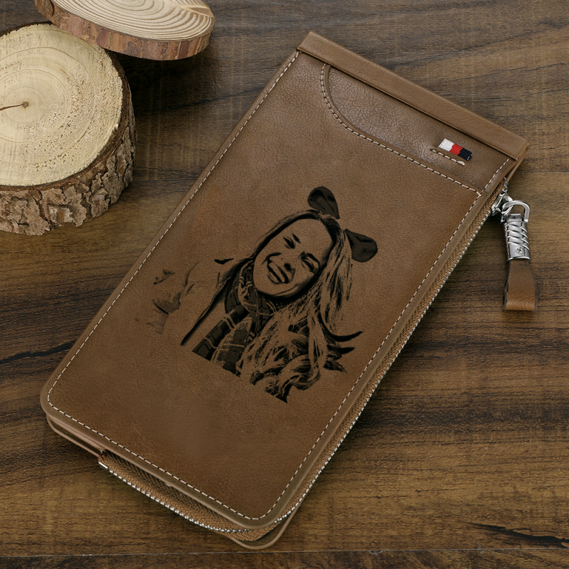 Custom Engraved Photo Wallet Card Holder Brown Leather Gift For Her
