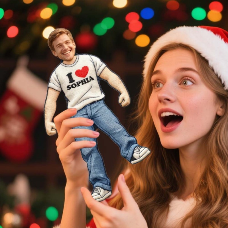 Custom Face Santa Muscle Doll Keychain Personalized Christmas Mini Figure Keychain/Doll