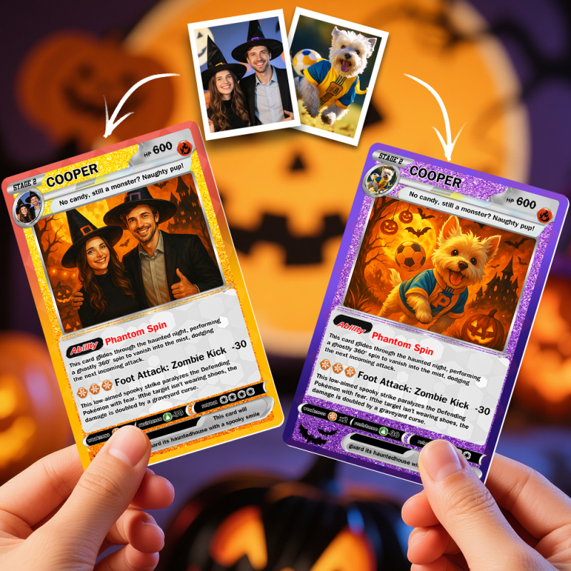 Custom Halloween & Christmas Couple Card Personalized Cartoon Trading Card with Photo & Name, Unique Holiday Gift for Lover