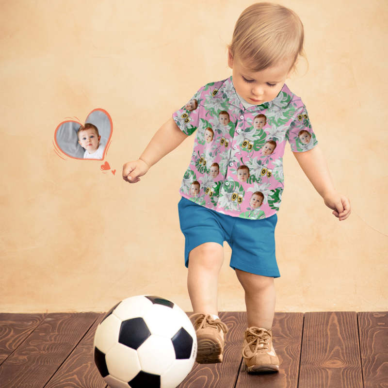 Custom Kid's Face Hawaiian Shirt Number in Wine Glass Pink And Green Sleeves Face Hawaiian Shirt Birthday Gift