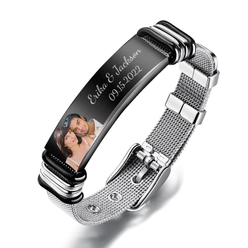 Custom Men's Stainless Steel Bracelet Save the Special Day Anniversary Gift