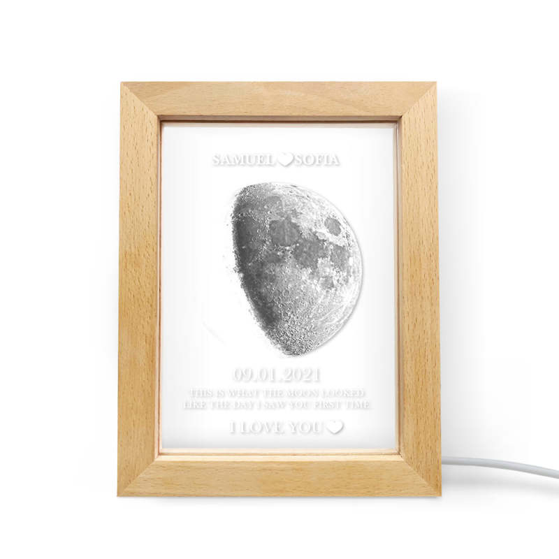 Custom Moon Phase and Names Frame Lamp with Personalized Text