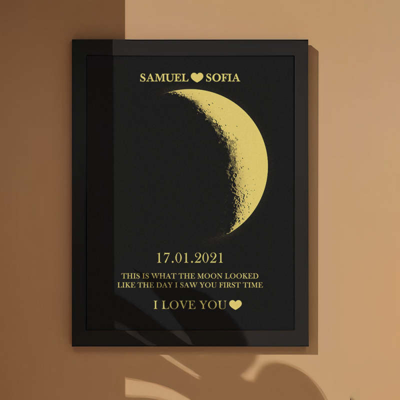 Custom Moon Phase and Names Wooden Frame with Your Text