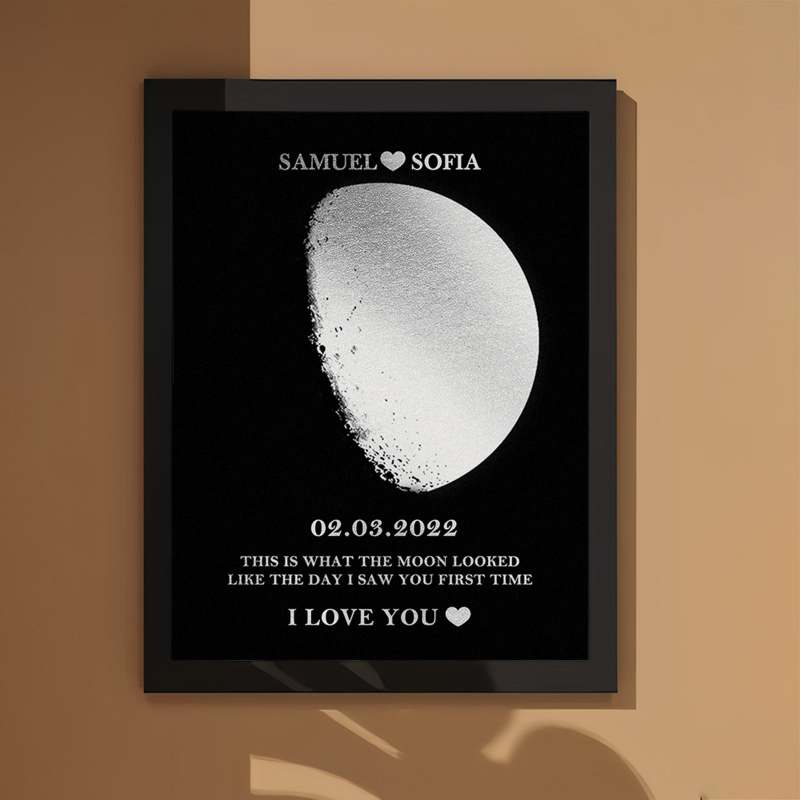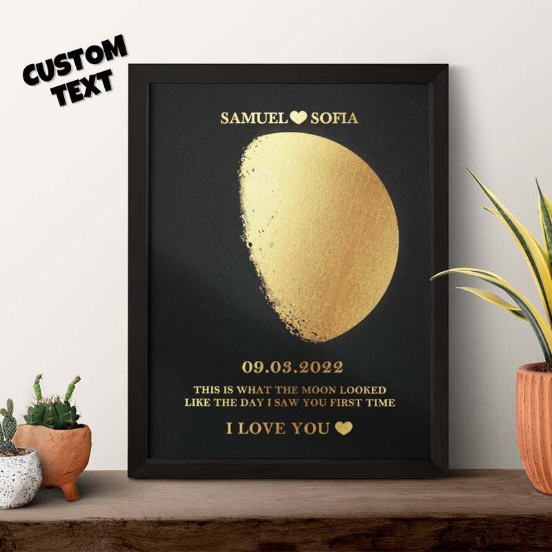 Custom Moon Phase Foil Print Wooden Frame Personalized Name and Text Family Gift
