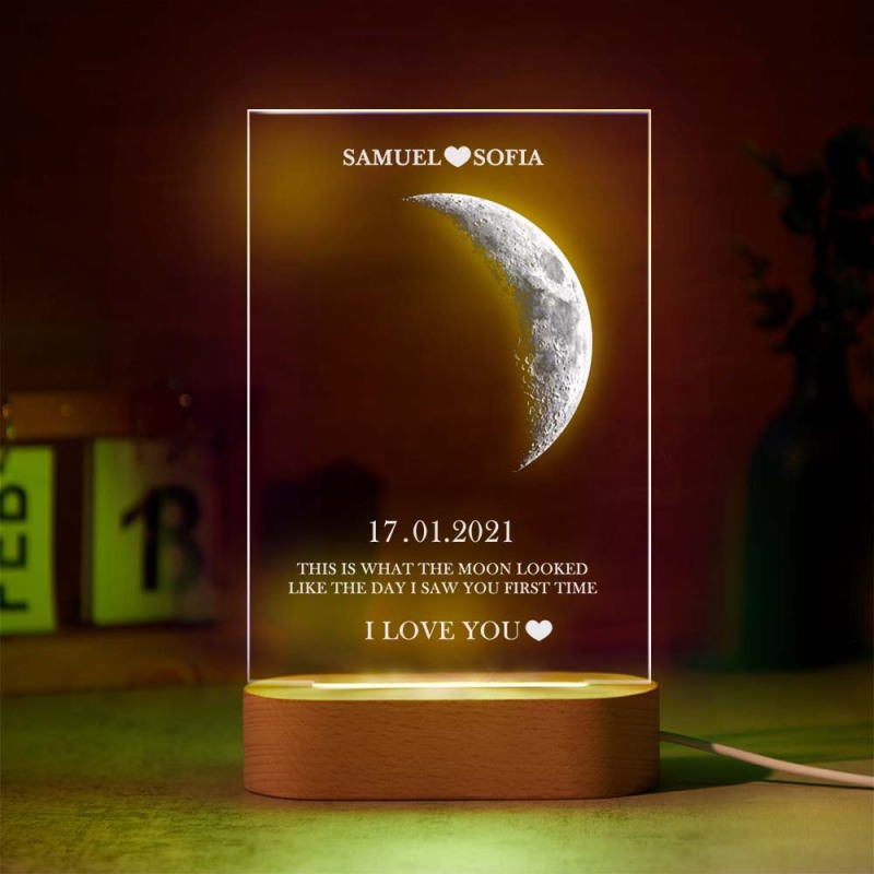 Custom Moon Phase Night Light Lamp with Personalized Names Text 7 Color Light