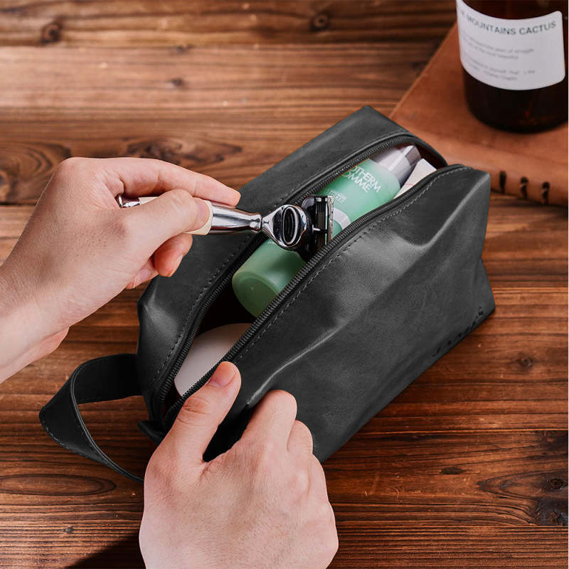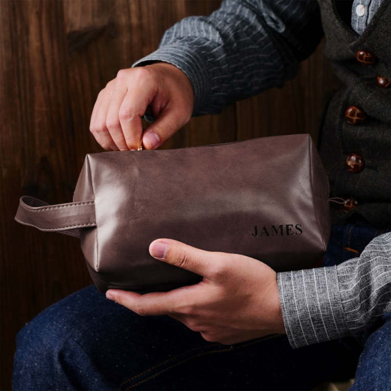 Custom Name Engraved Men's Toiletry Travel Storage Bag Leather Bag