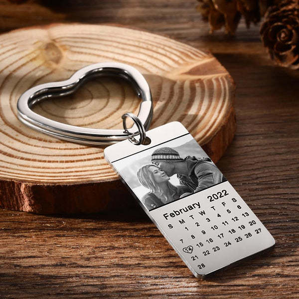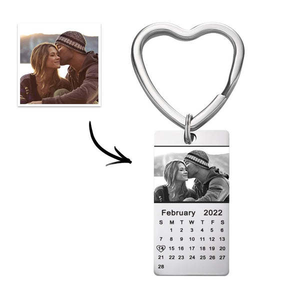 Custom Photo Calendar Keychain with Heart Love Date Stainless Steel Souvenir