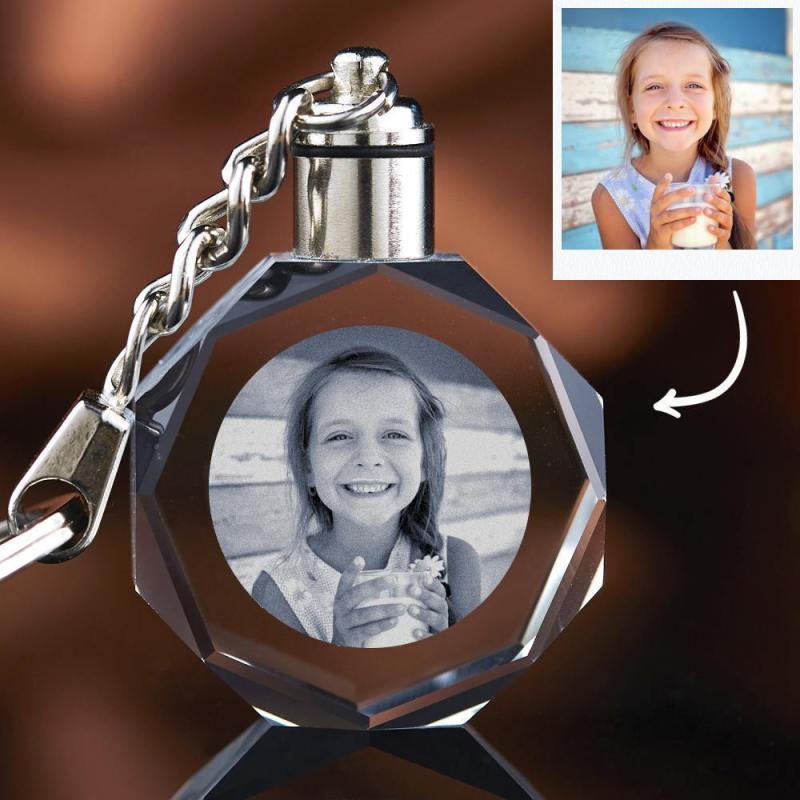 Custom Photo Crystal Keychain Octagon Shape | Best Gifts For Mom