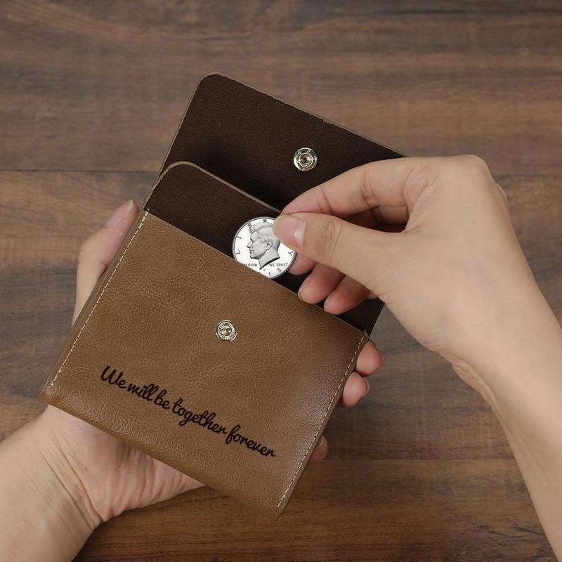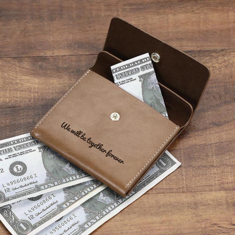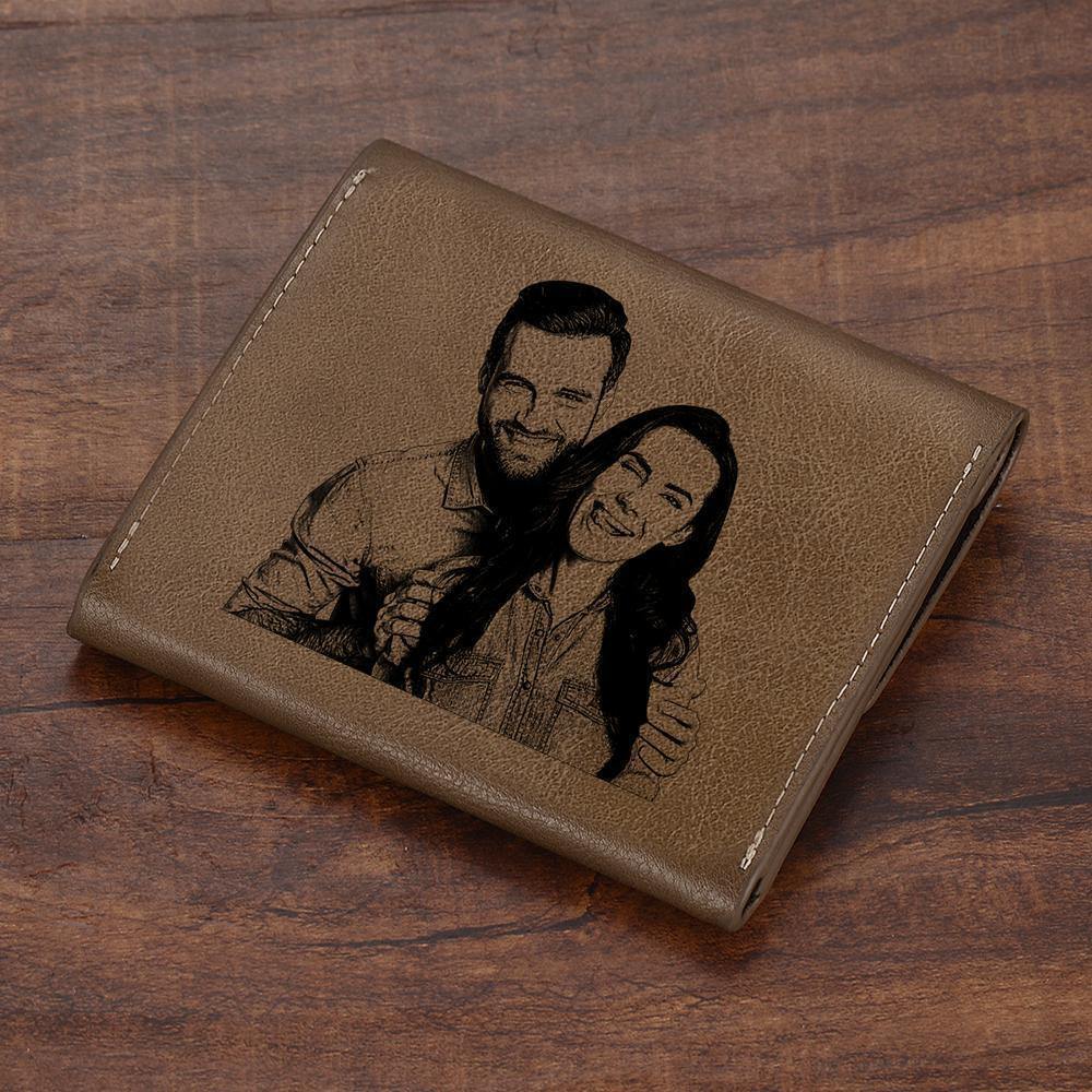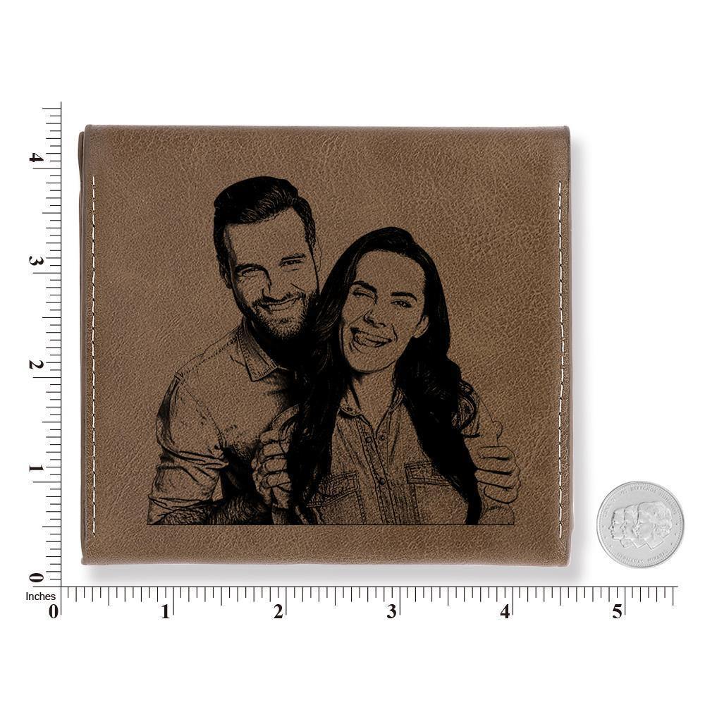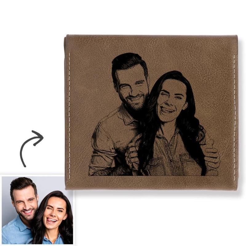 Custom Photo Engraved Wallet Coin Purse Brown Leather