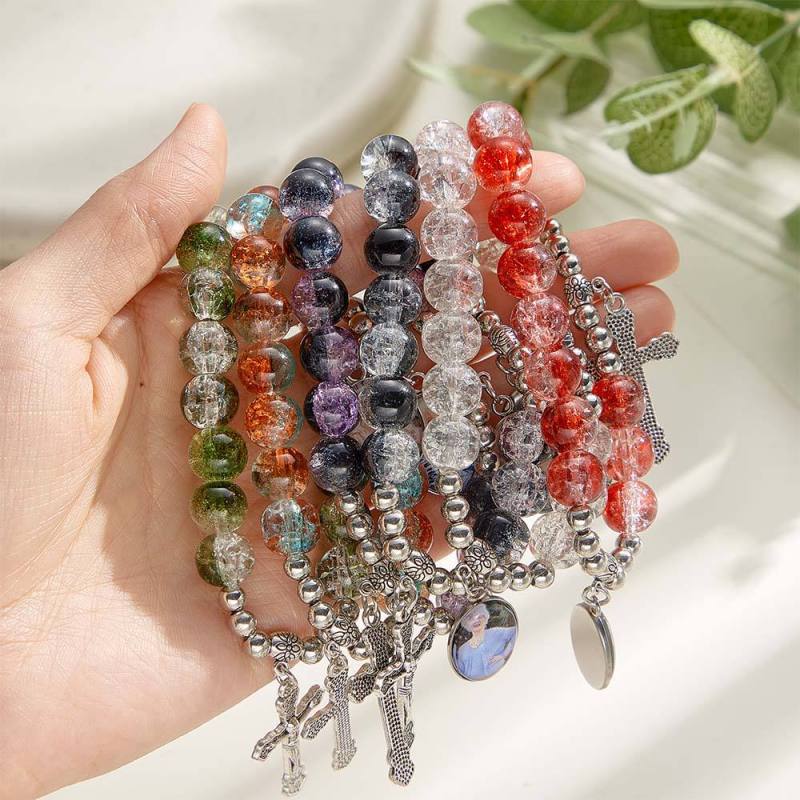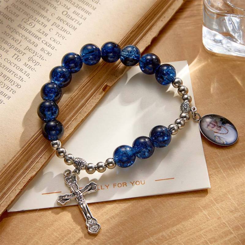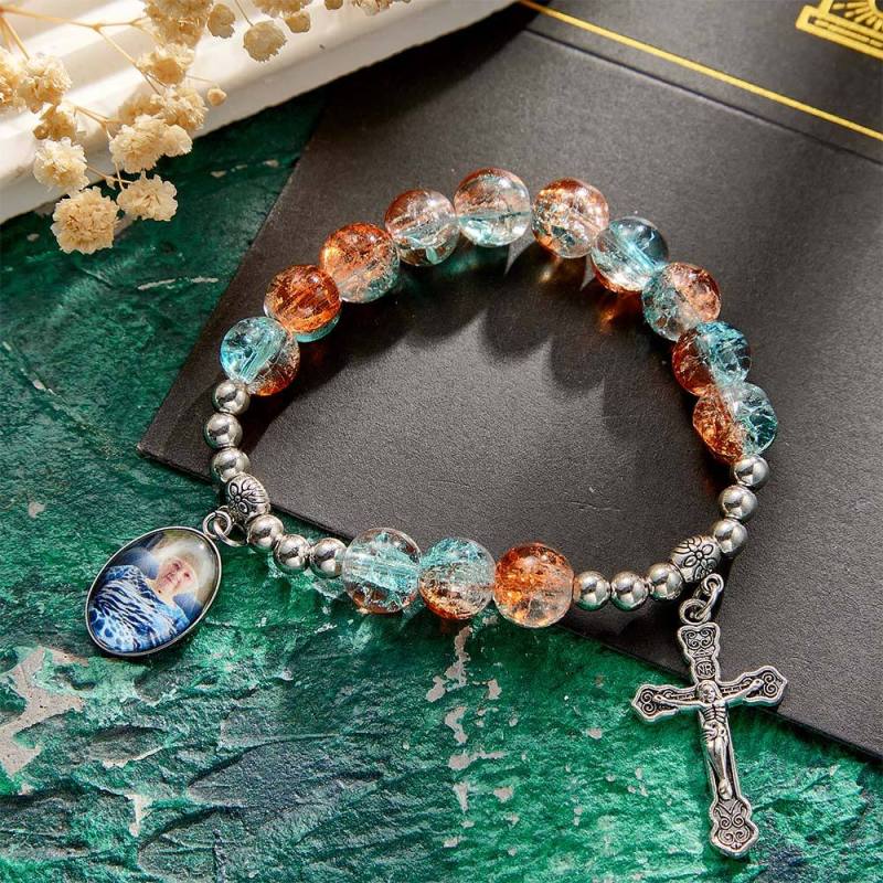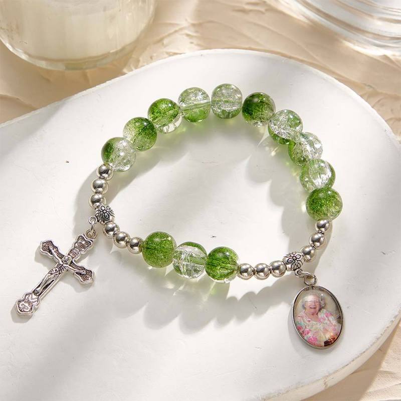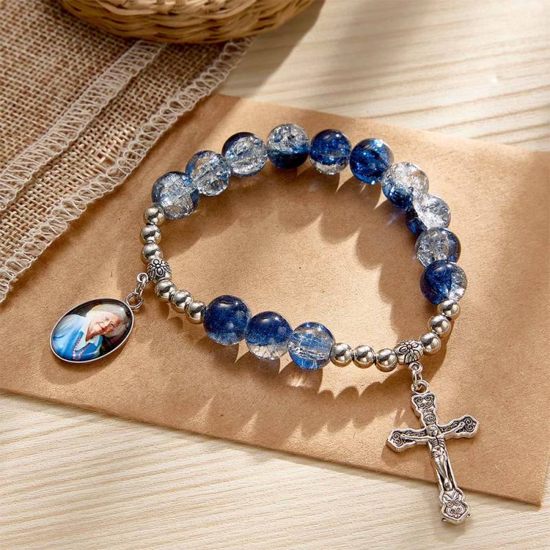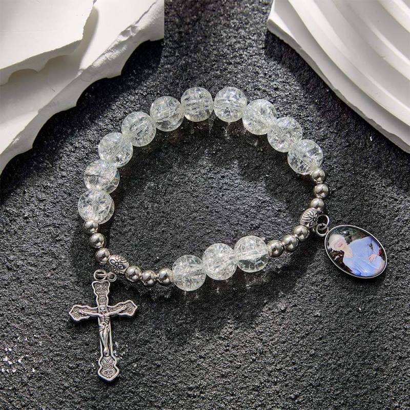 Custom Photo Rosary Beads Cross Bracelet Baptism Gift, First Communion Gift, Confirmation, Baby or Little Girl Keepsake Sentimental Memorial Gifts Crystal Prayer Personalized Gifts for Women