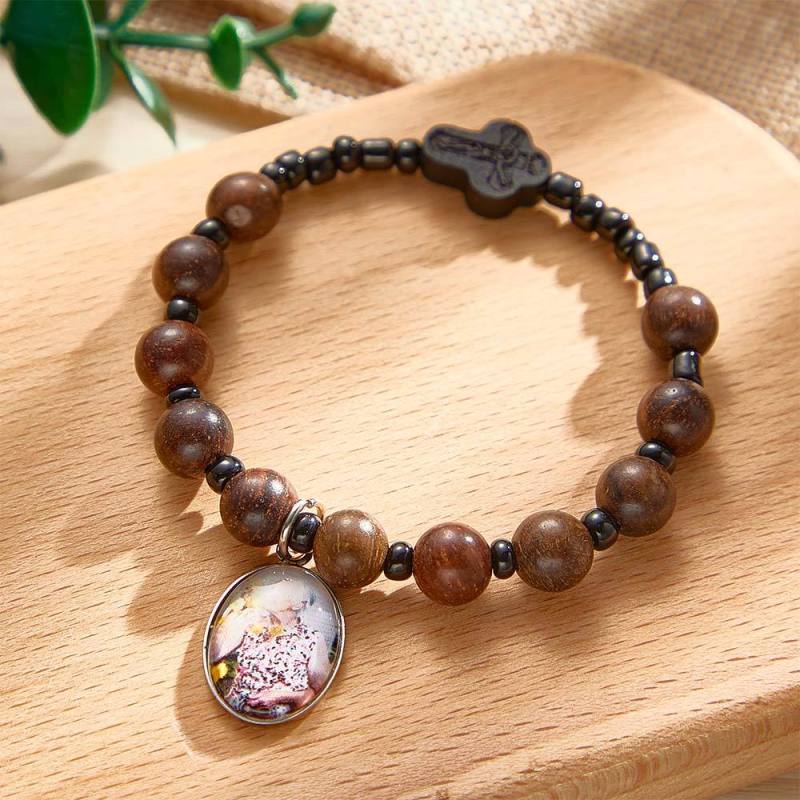 Custom Photo Rosary Wood Beads Cross Bracelet Memorial Gifts Baptism Gift, First Communion Gift, Confirmation, Baby or Little Girl Keepsake Prayer Personalized Sentimental Gifts for Him