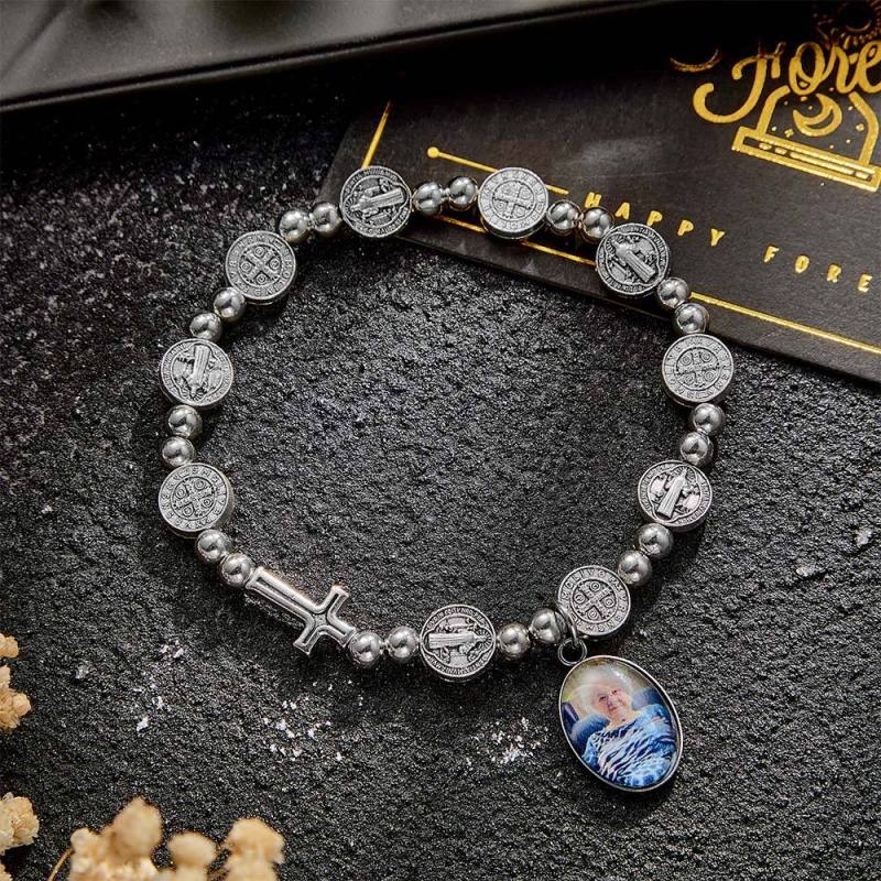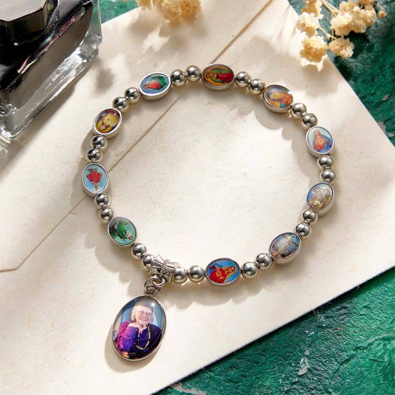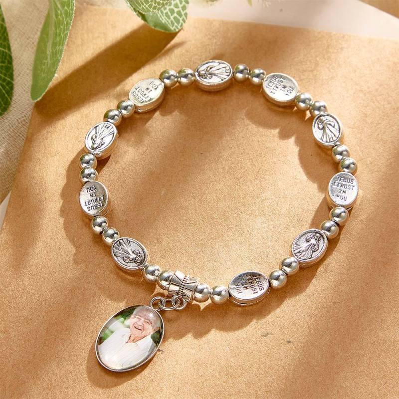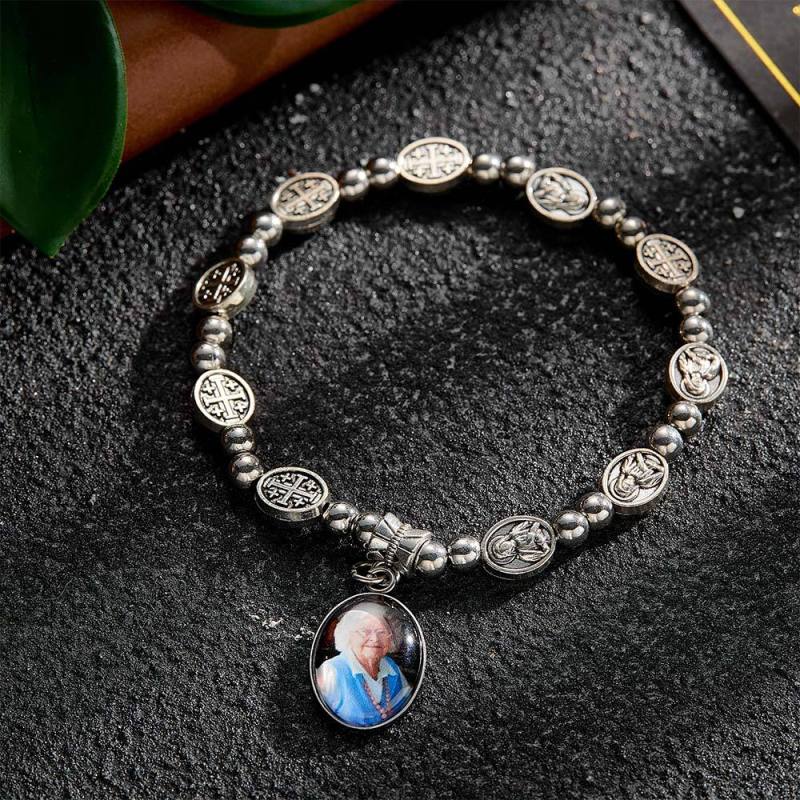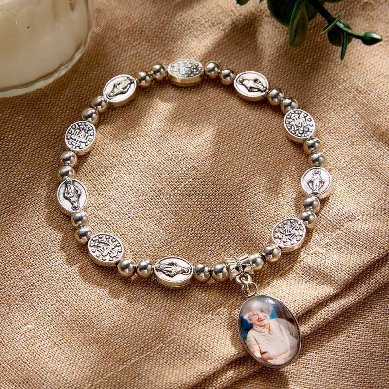 Custom Rosary Beads Bracelet Sentimental Memorial Gift Prayer Baptism Gift, First Communion Gift, Confirmation, Baby or Little Girl Keepsake Personalized with Photo Gifts for Women