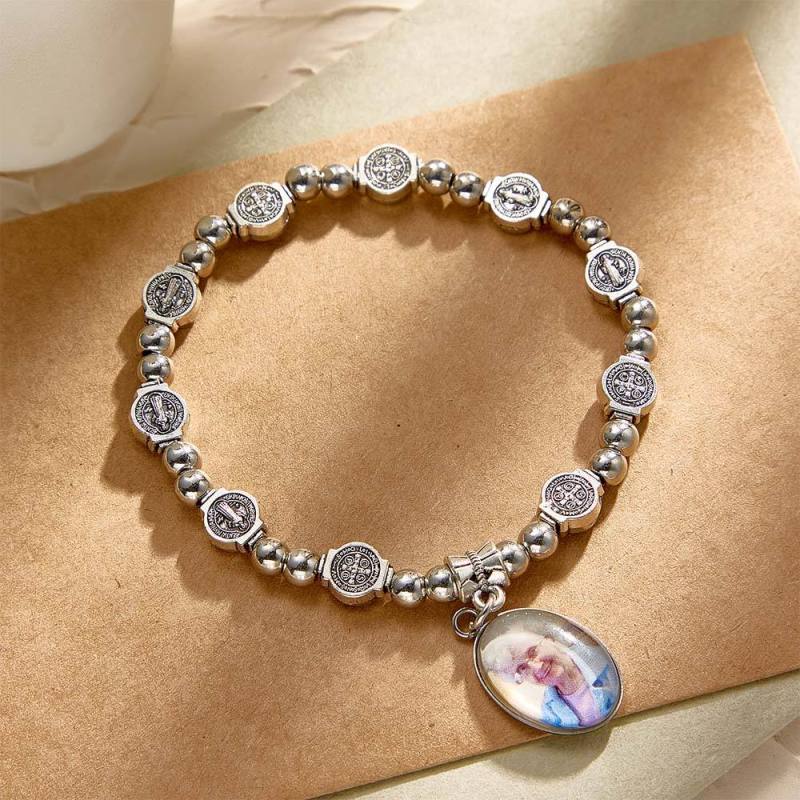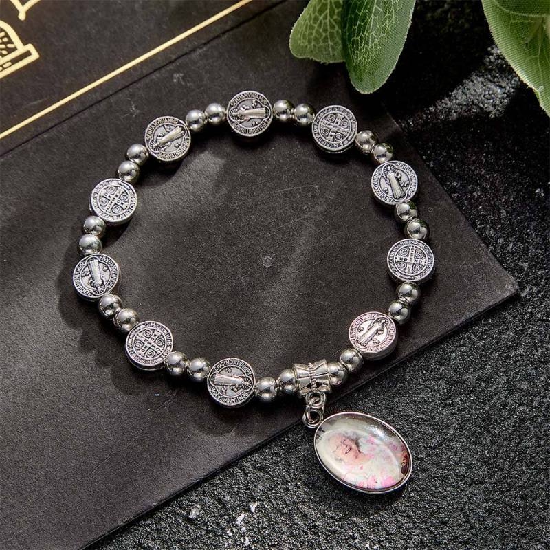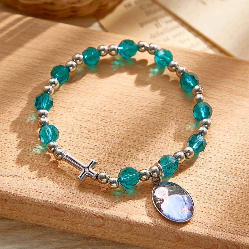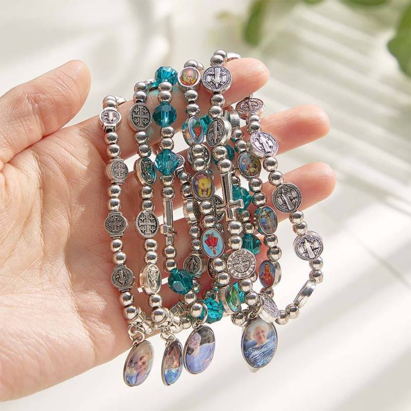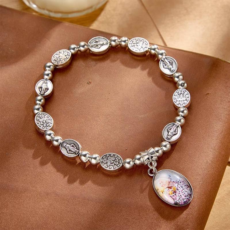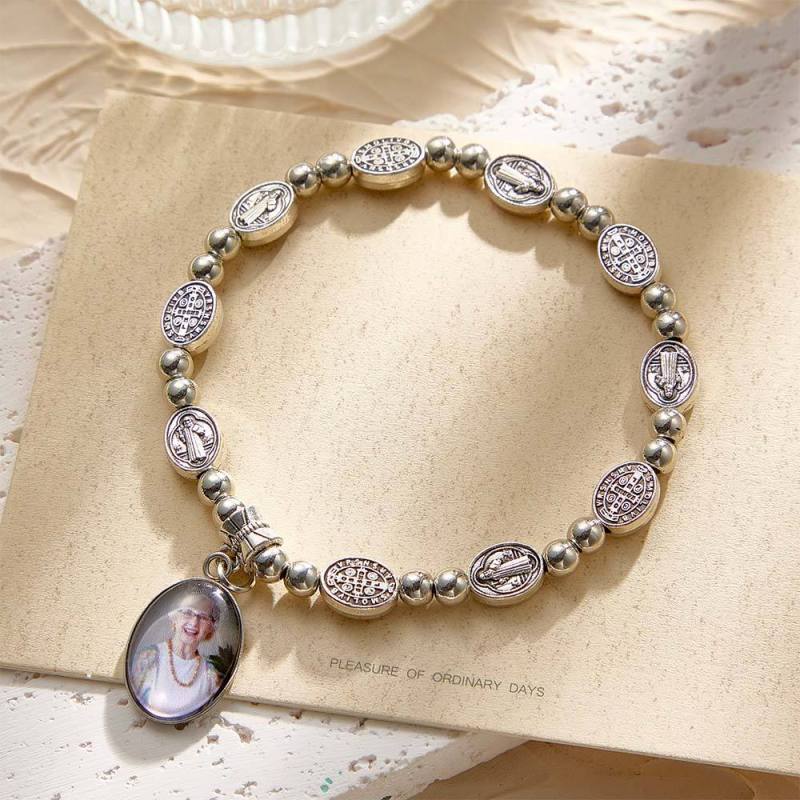 Custom Rosary Beads Bracelet Sentimental Memorial Gift Prayer Baptism Gift, First Communion Gift, Confirmation, Baby or Little Girl Keepsake Personalized with Photo Gifts for Women