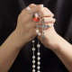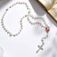 Custom Rosary Beads Cross Necklace Personalized White Bayberry Beads Necklace with Photo
