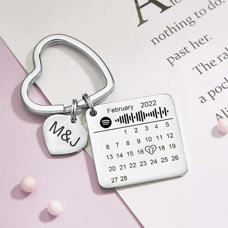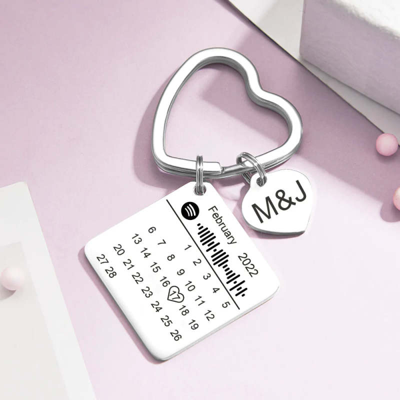 Custom Spotify Calendar Keychain Anniversary Gifts Custom Calendar Spotify Keychain Heart Shape Keychain