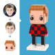 Customized Head Children's Red and Black Box Shirt Figures Small Particle Block Toy Customizable Brick Art Gifts