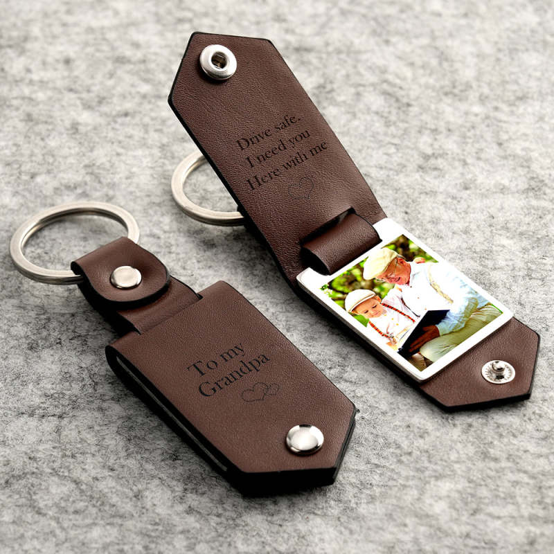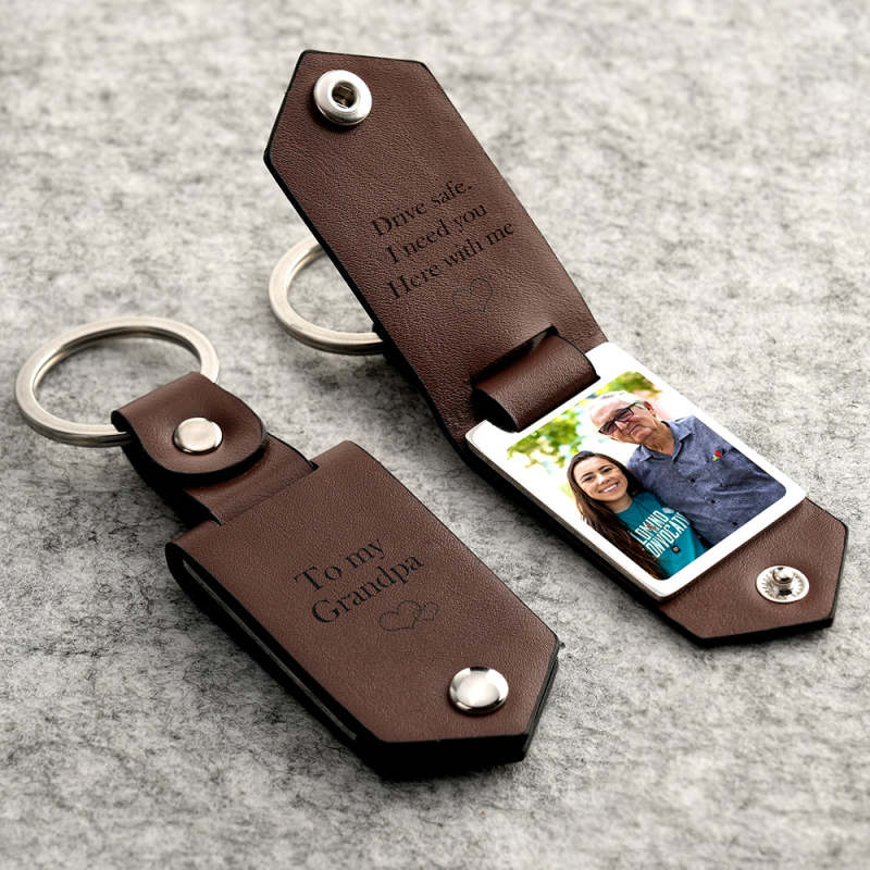 Drive Safe Keychain to My Forever Young Grandpa Custom Leather Photo Text Keychain with Engraved Text