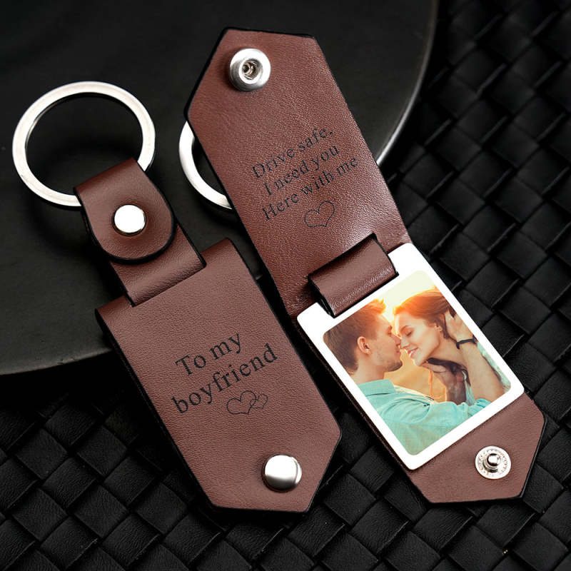 Gifts For Boyfriend Drive Safe Keyrings Australia Custom Leather Photo Keychain with Engraved Text