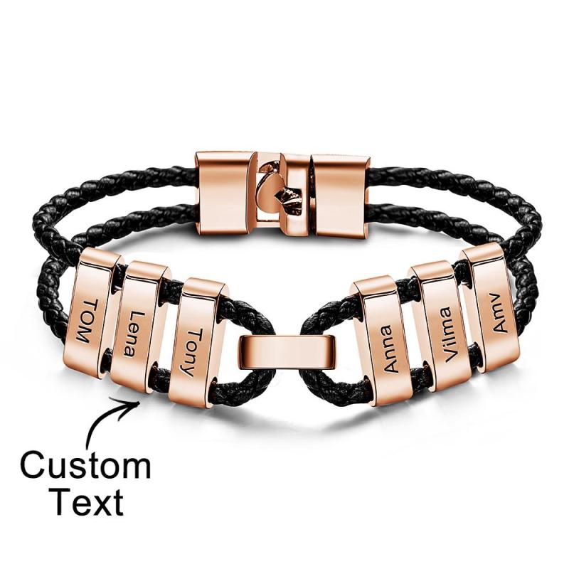 Engraved Beads Leather Bracelet Custom Letter Name Bracelet Father's Day Gift