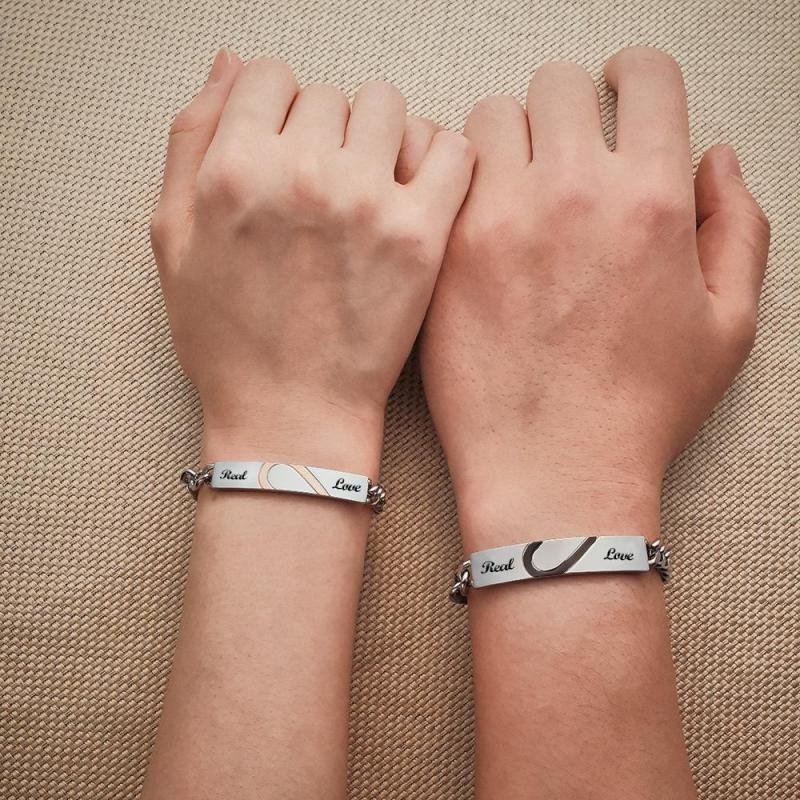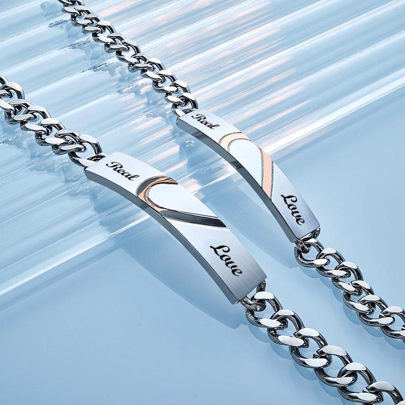 Engraved Couple Bracelet Personalized Love Heart Wide Chain BraceletValentine's Day
