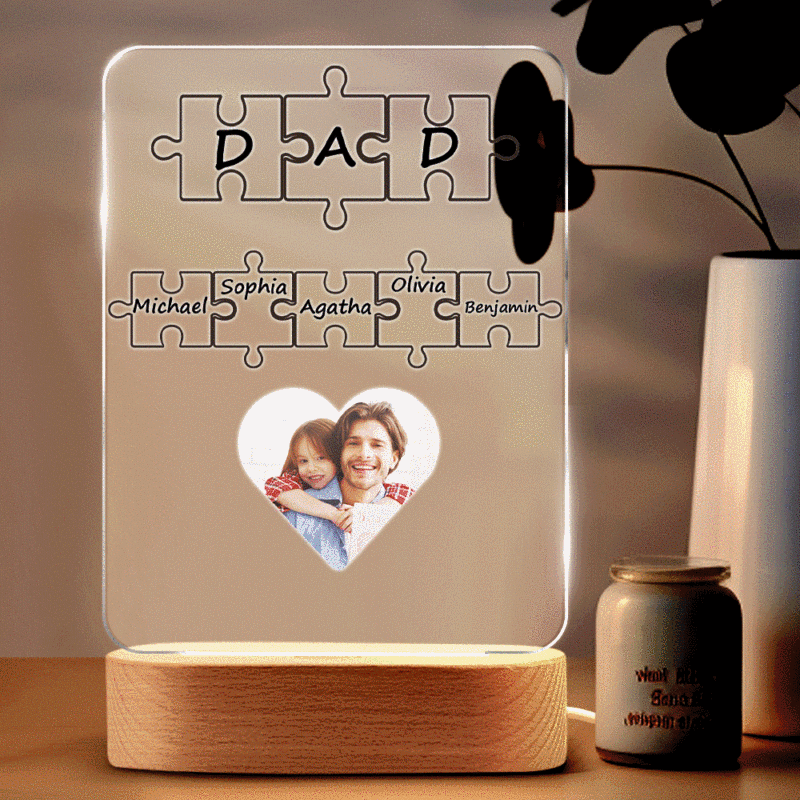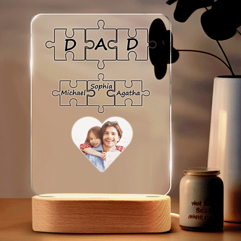 Father's Day Puzzle Night Light Engraved Lamp Best Gift for Dad