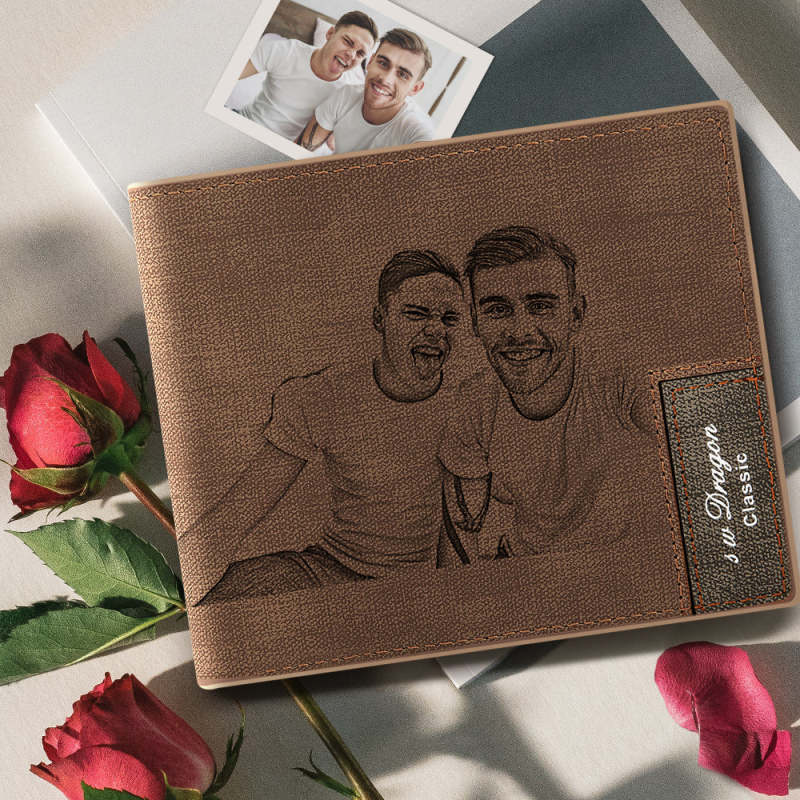 Gift For LGBT Men's Bifold Custom Photo Wallet Brown