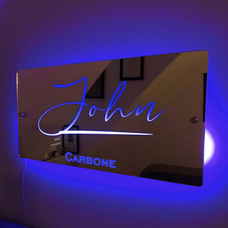 Anniversary Gifts Personalised Name Mirror Sign Custom LED illuminated Light-Up Bedroom Sign