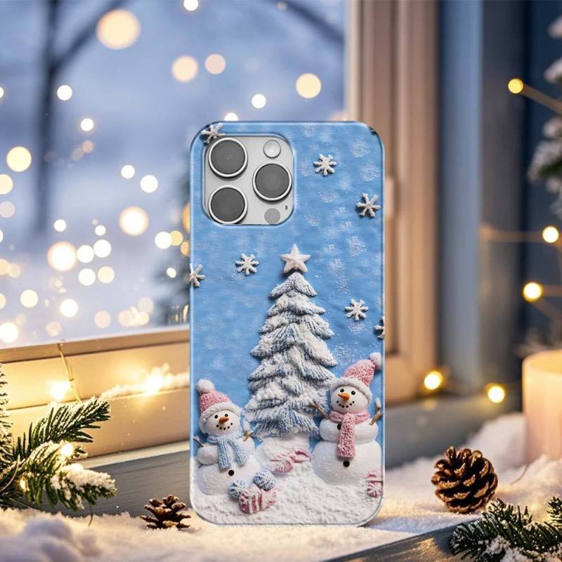 MagSafe Snowman Winter iPhone Case | Christmas Tree Snow Scene Phone Cover for iPhone 15, 14, 13 Pro Max | Holiday MagSafe Case ps c24