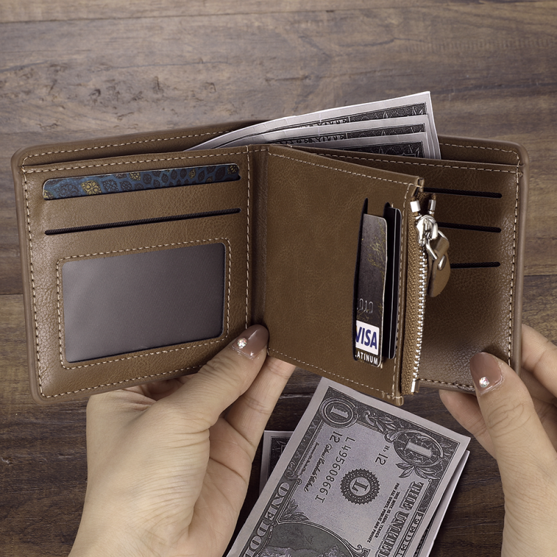 Men's Custom Engraved Photo Wallet Brown Leather (Design Online & Preview)
