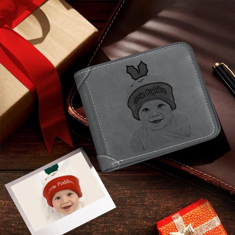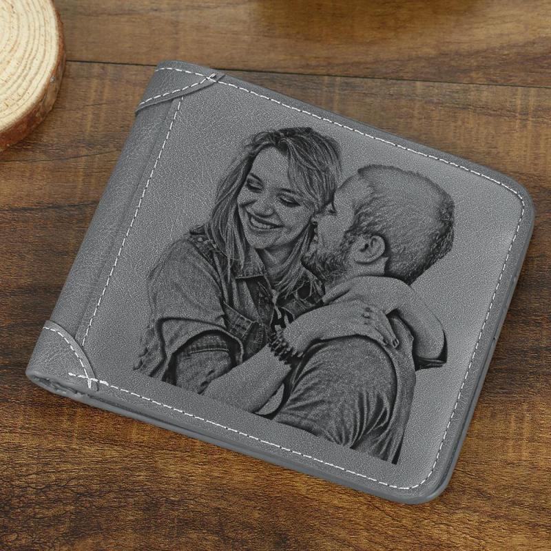 Men's Custom Engraved Photo Wallet Grey Leather