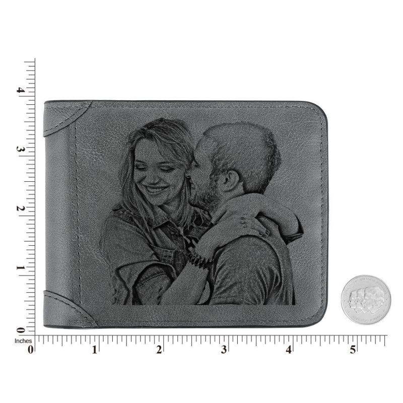 Father's Day Gift Men's Custom Engraved Photo Wallet Grey Leather