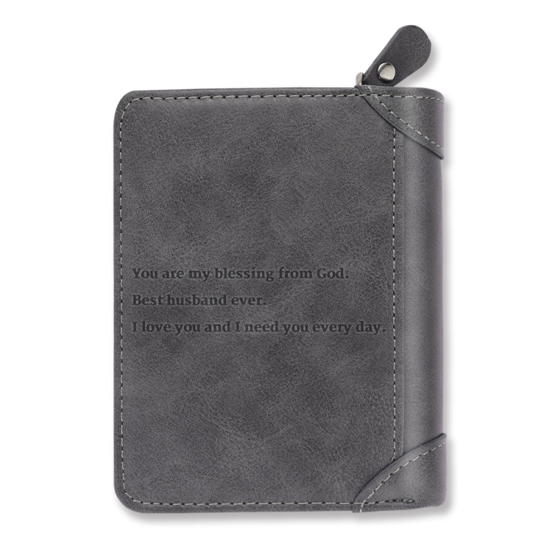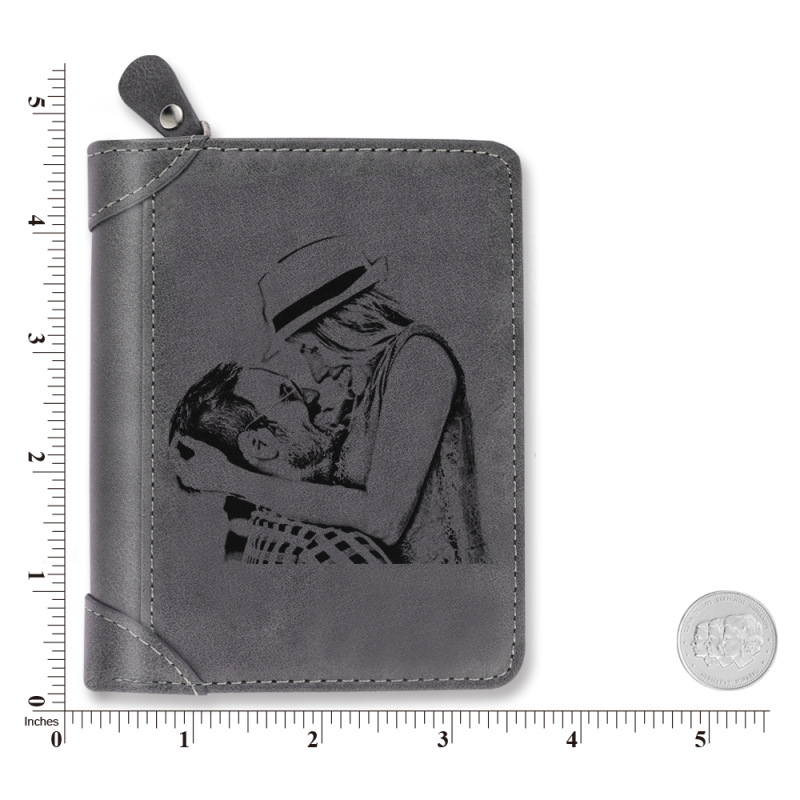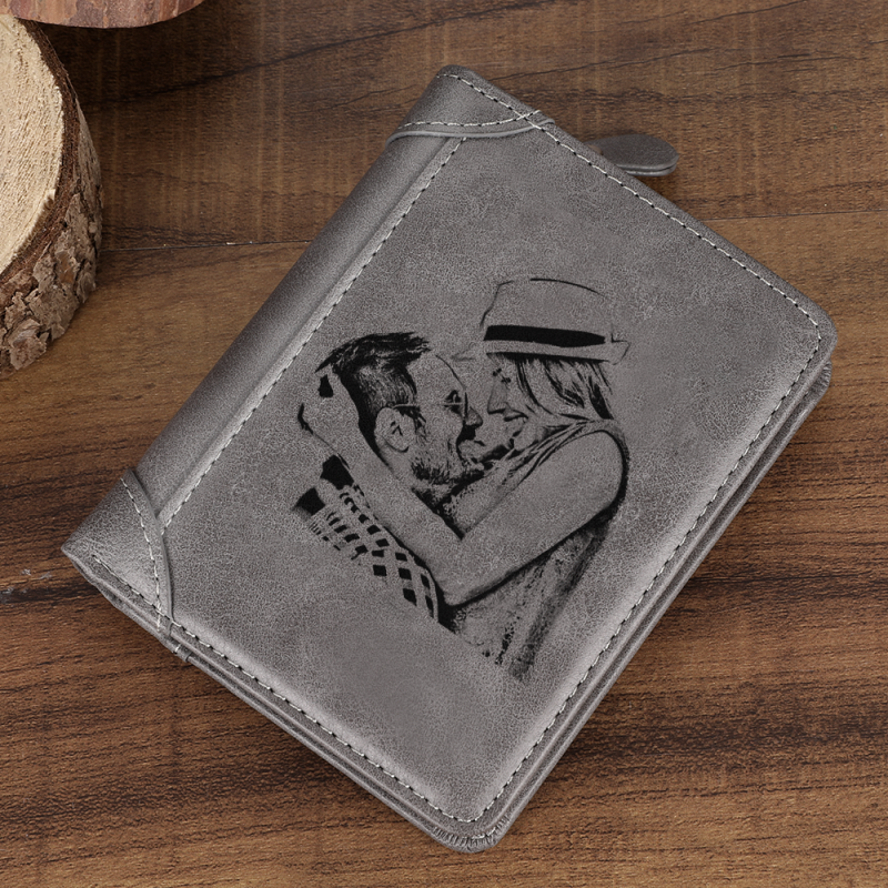 Men's Custom Engraved Photo Wallet Grey Leather