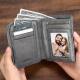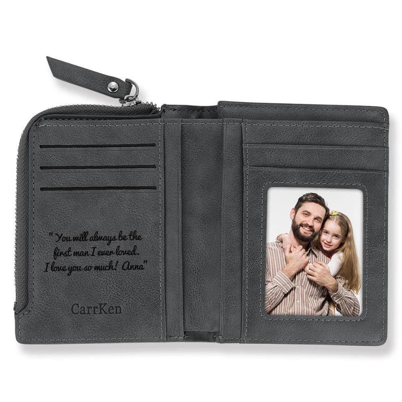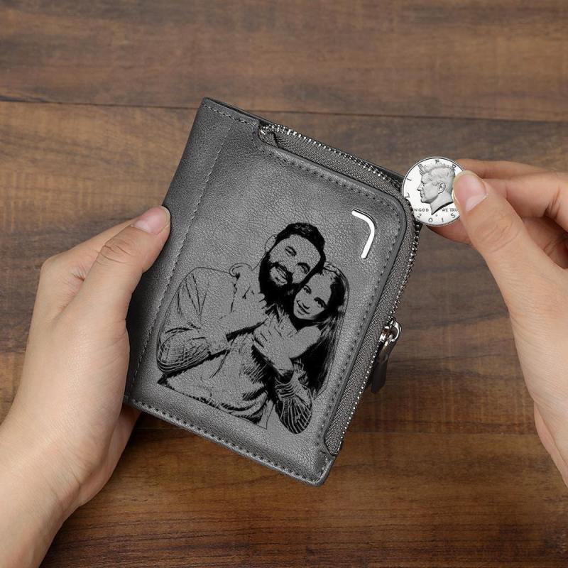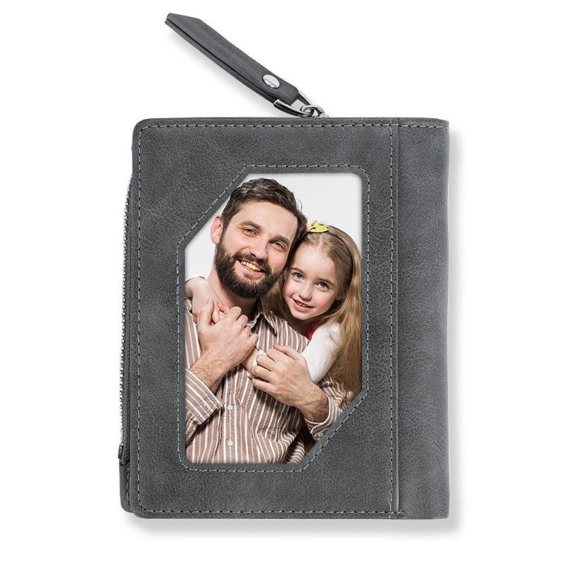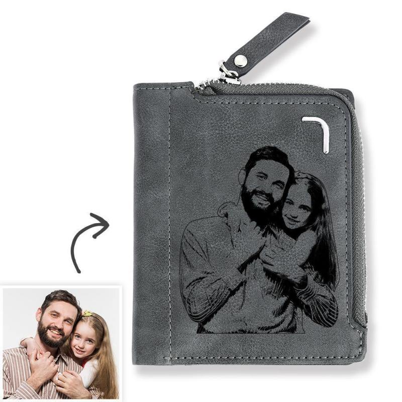 Men's Custom Photo Engraved Bifold Zipper Wallet For Best Daddy - Grey