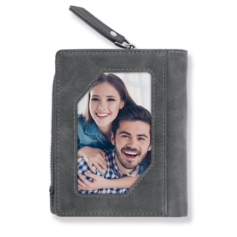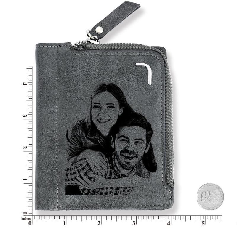 Men's Custom Photo Engraved Bifold Zipper Wallet - Grey