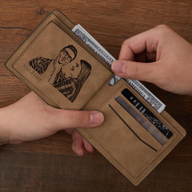 Men's Custom Photo Engraved Wallet Bifold Short Wallet Brown Gift For Dad