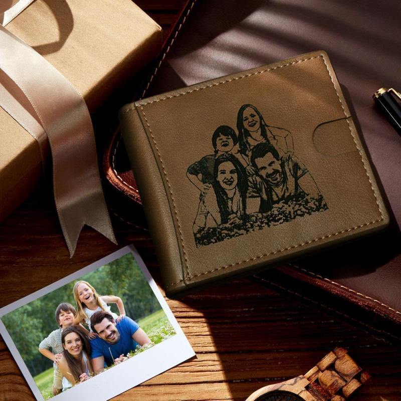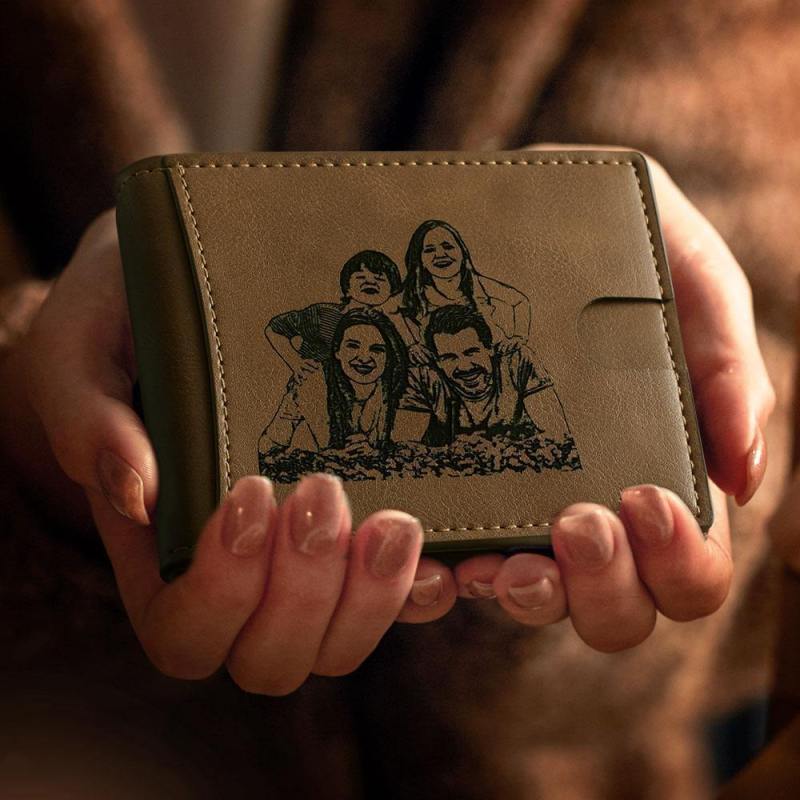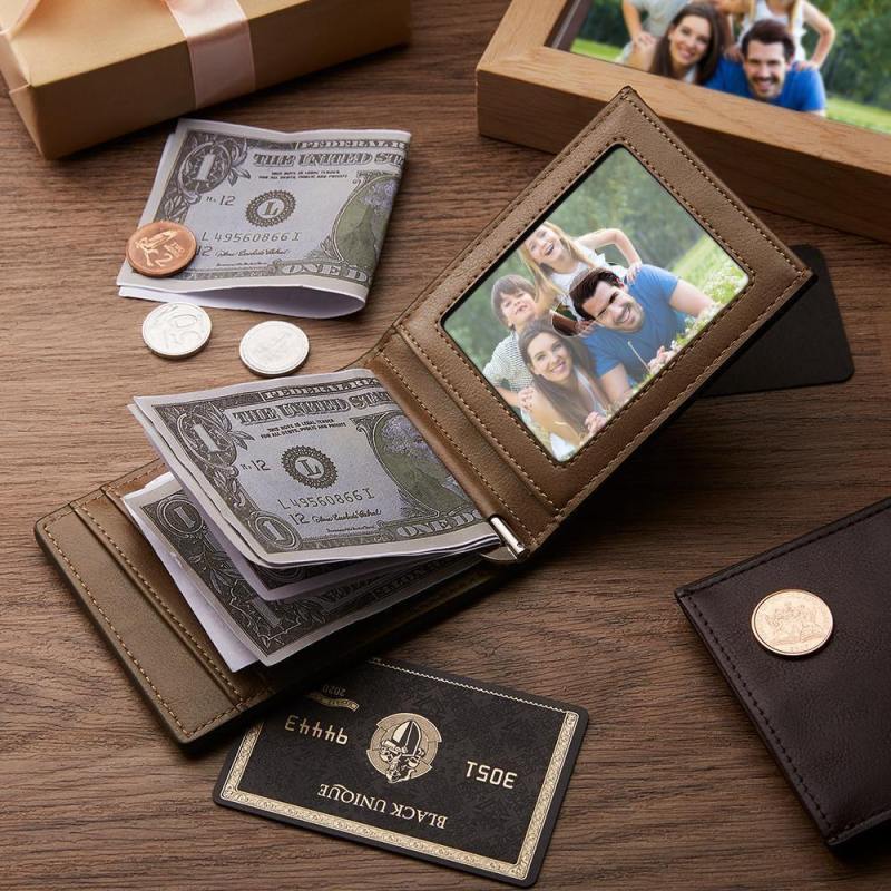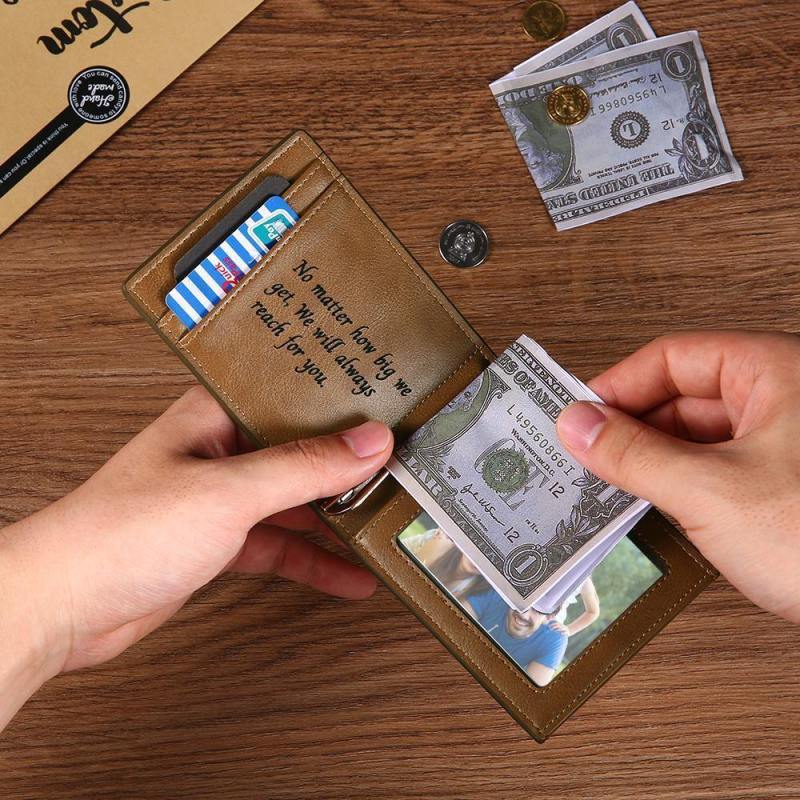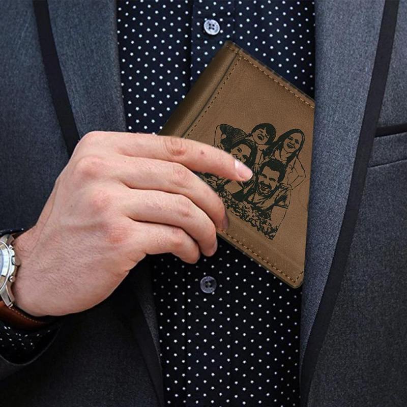 Men's Custom Photo Engraved Wallet Money Clips Brown