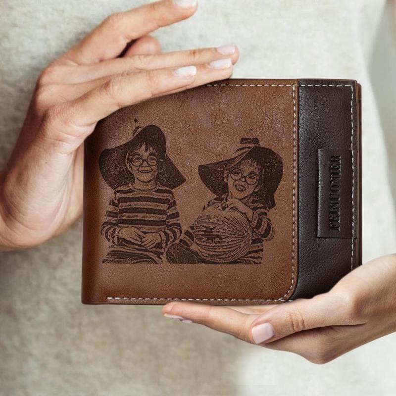Men's Custom Photo Engraved Wallet RFID Blocking Wallet Brown