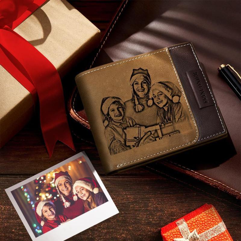 Men's Custom Photo Engraved Wallet RFID Blocking Wallet Brown