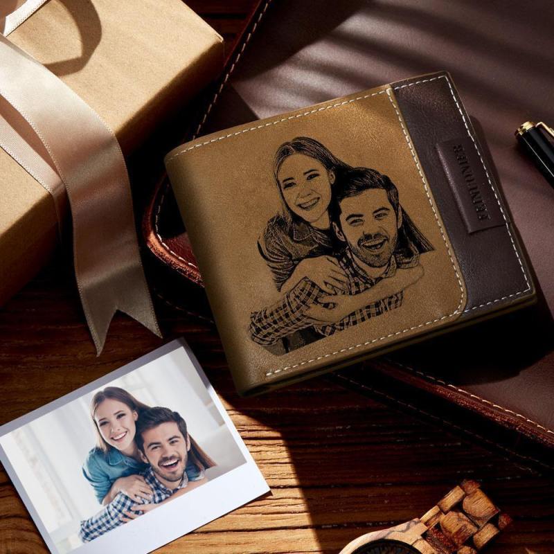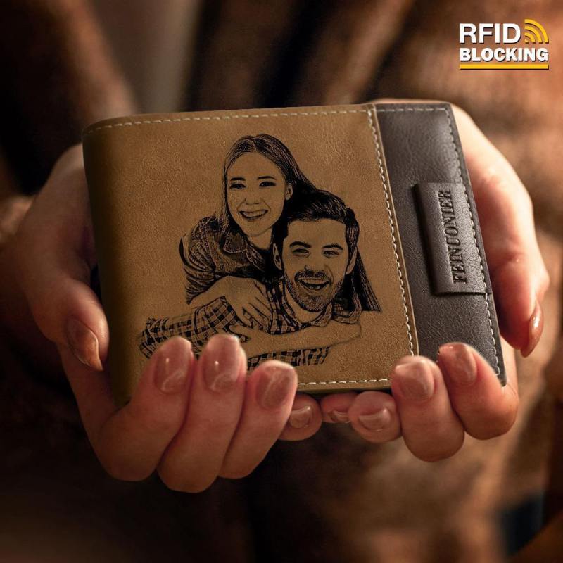 Anniversary Gift - Men's Custom Photo Engraved Wallet RFID Blocking Wallet Brown