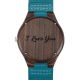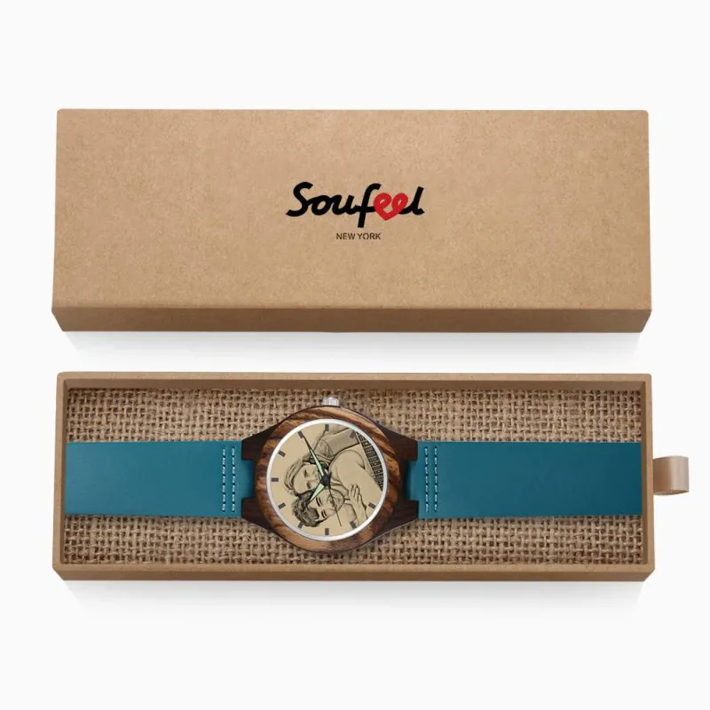 Men's Engraved Wooden Photo Watch Blue Leather Strap